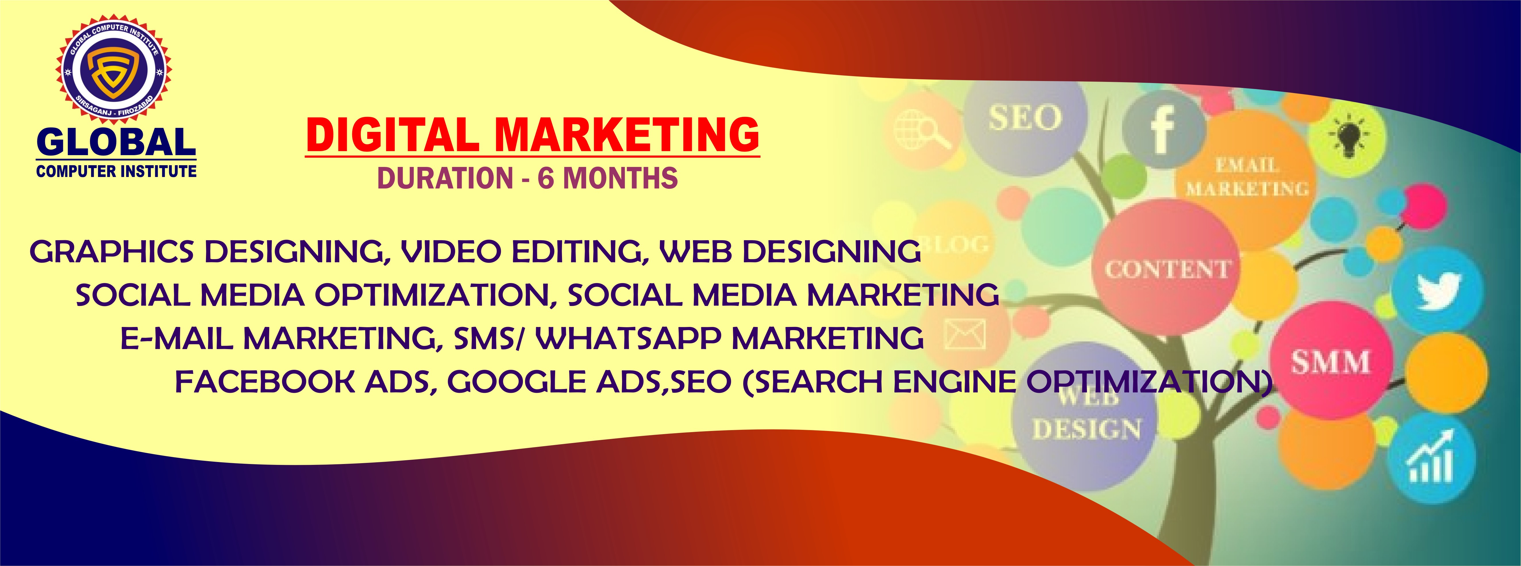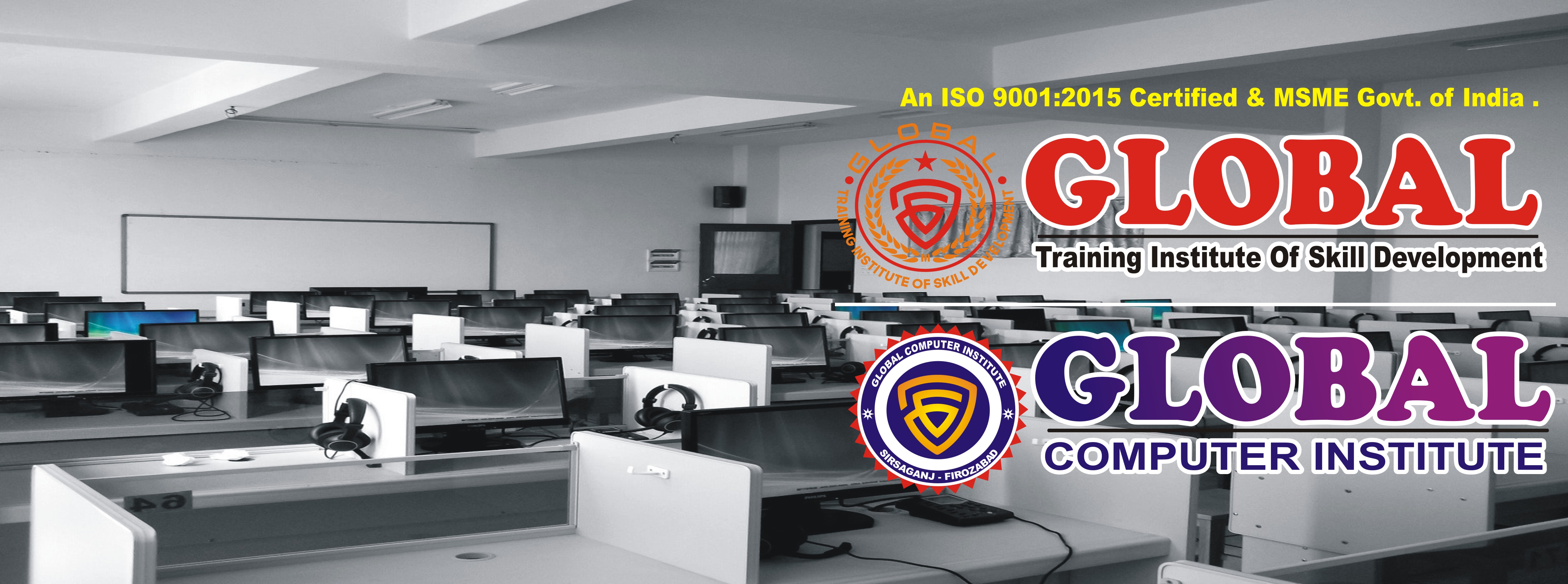 Global Training Institute of Skill Development & Global Computer Institute “Divya Singh Education Society Sirsaganj, Firozabad” Delhi An ISO 9001:2015 Certified has been registered under the society Act. 21, 1860. (Reg. No. 6361/Ag57357/2012-13) & MSME Govt. of India . Working in different fields of Education Information technology, Vocational Education, etc. The our aim. Since 10 Years success, conducting various commercial training programs, our Organization decided to work in "Vocational Education & Industrial Training for all" up to 2016 to 2017 given the slogan by the Indian Govt. For formulating the dream of Indian Govt. fulfill the requirement of employment of 5 lac in I.T. Technology and more than other 10 Lac ancillary requirement of computer operator / specialist in industrial development, small scale industries, Our Organization make an important role in the mission GTISD,GCI.